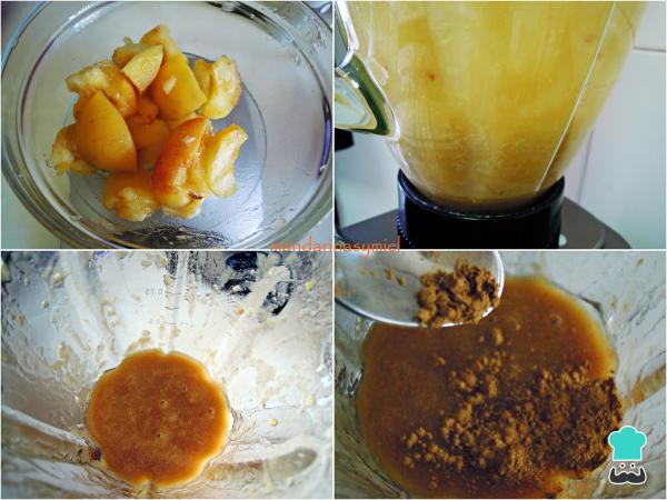 3Para hacer el bavarois de albaricoque con canela puedes usar un molde de silicona o cualquier otro que sea desmontable. Cuando lo tengas, engrasa el molde con mantequilla y espolvorea con azúcar glass toda la superficie, vierte toda la mezcla en el molde y da unos suaves golpes al molde para evitar que se queden burbujas en el centro.