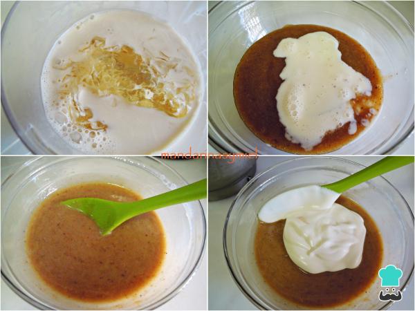 2A continuación, bate la leche evaporada, reservando un poco para deshacer la gelatina más adelante, hasta que esté bien montada, suele costar un poco más que la nata, pero si estaba bien fría se monta de maravilla y tiene muchas menos calorías.