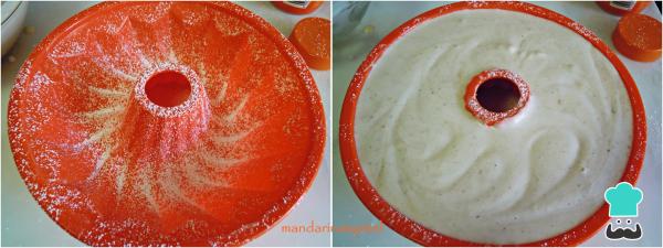 3 Para hacer el bavarois de albaricoque con canela puedes usar un molde de silicona o cualquier otro que sea desmontable. Cuando lo tengas, engrasa el molde con mantequilla y espolvorea con azúcar glass toda la superficie, vierte toda la mezcla en el molde y da unos suaves golpes al molde para evitar que se queden burbujas en el centro.