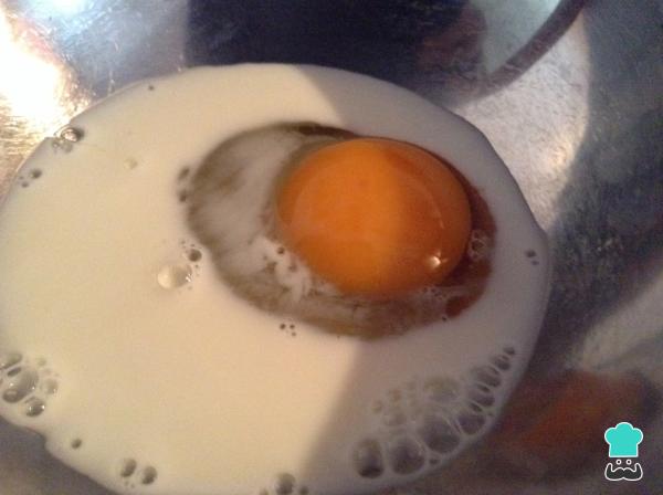 4En un tazón adiciona los huevos, la esencia de vainilla y la leche. Bate muy bien hasta que se mezclen los ingredientes.