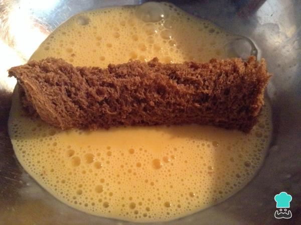 5 Pasa los canutillos rellenos por la mezcla de huevos y leche, procurando que estos no se empapen mucho ya que pueden deshacerse.