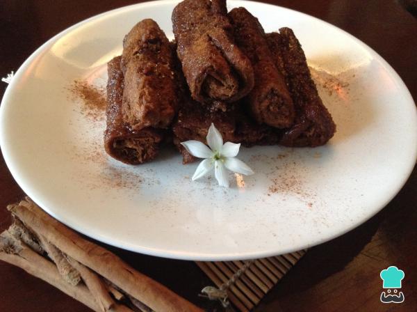 9Una vez estén bien dorados los canutillos rellenos de chocolate sírvelos en un plato y, si lo deseas, decora con un poco de canela en polvo. Lo ideal es consumirlos fríos pues, van a endurecer apenas se enfríen. Esta receta es perfecta para consumir en Semana Santa o Cuaresma, y con ellavas a sorprender a grandes y pequeños, pues es realmente exquisita. Es apta tanto para la hora de la merienda como para el desayuno acompañada de un batido de frutas. Si te ha gustado nuestra receta de canutillos de torrijas con crema te sugerimos que consultes los canutillos de hojaldre, ¡también están deliciosos! ¡Disfruta y no olvides dejar tu comentario!