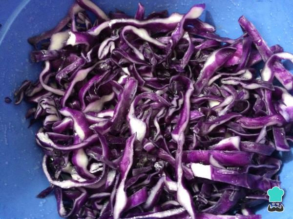 2Cortar la col finamente y agregar la sal, mezclar todo muy bien.