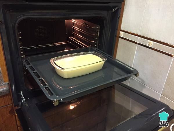 4 Cubrimos el fondo de un molde con azúcar y vertemos la mezcla encima. El flan casero debe hacerse al baño María, con lo cual vamos a llenar con un dedito de agua la bandeja del horno y pondremos el flan encima. Lo tendremos a 150ºC durante 40-45 minutos.