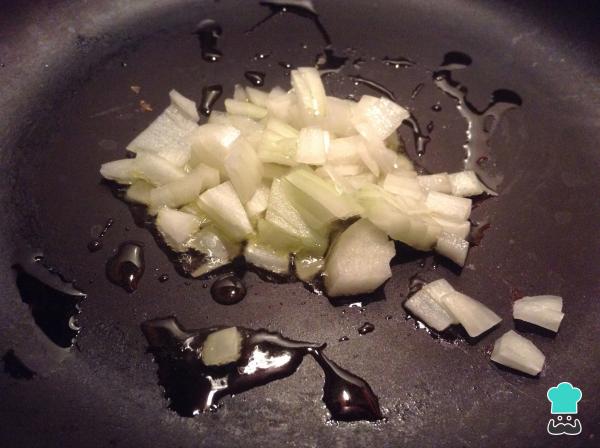 4Lleva una sartén a fuego medio con un poco de aceite de oliva, adiciona la cebolla blanca en cuadros pequeños y saltea. Puedes utilizar cebolla blanca o cebolleta, ambas opciones son válidas.
