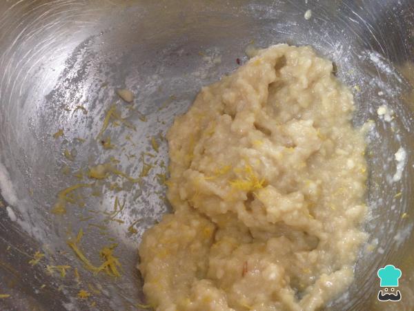 4Incorporamos la ralladura de limón, mezclamos y metemos la masa en la nevera durante una hora y media.